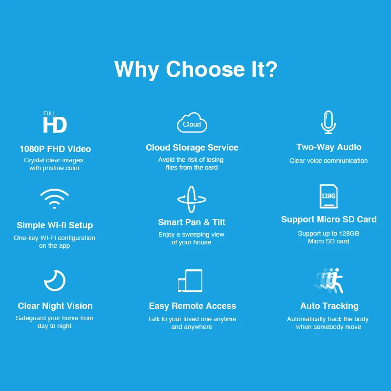 FREDI 1080P Auto Tracking IP Camera Home Security WiFi Camera IR Night Vision Surveillance Cameras