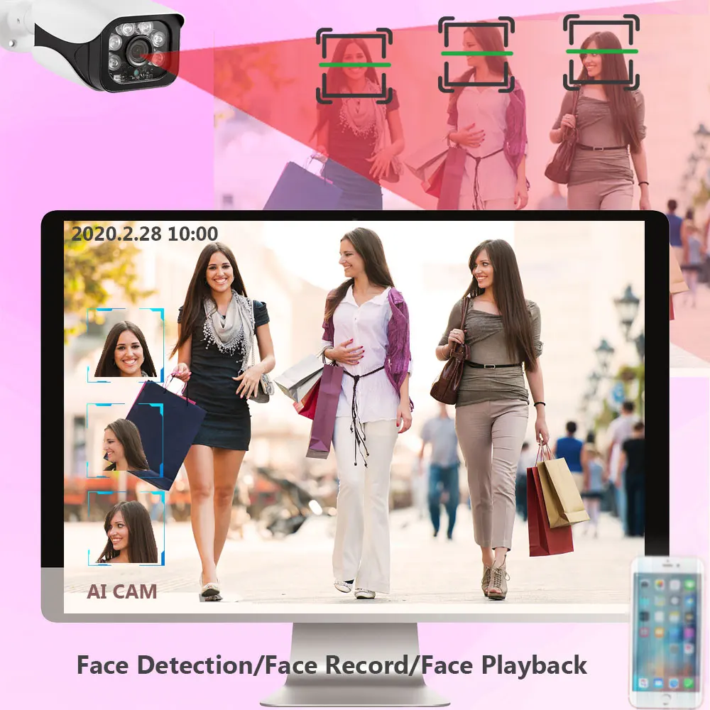 TOP H.265+ 8CH 5MP 6in1 Face Record DVR Security AHD Camera System Kit UHD 2592*1944P Waterproof CCTV V