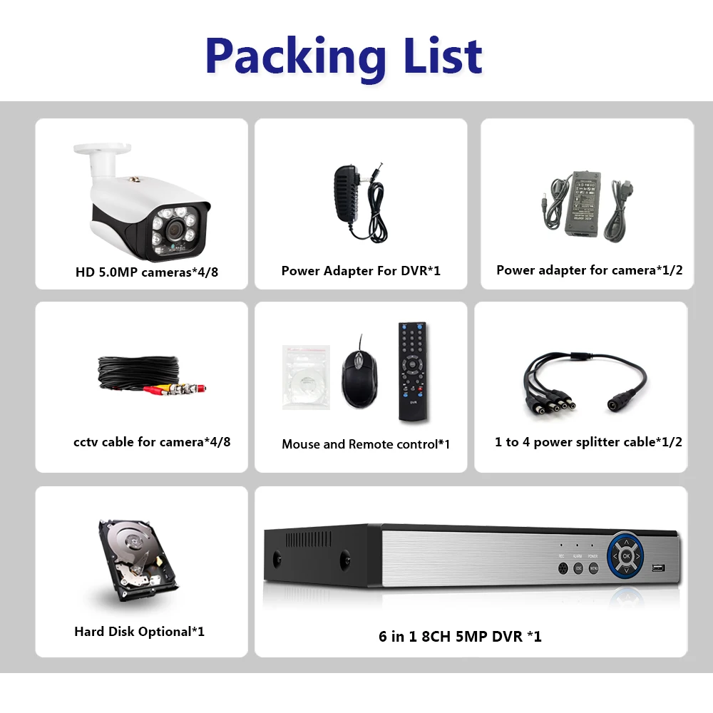 Belum ada Komentar untuk "ORIGINAL H.265+ 8CH 5MP 6in1 Face Record DVR Security AHD Camera System Kit UHD 2592*1944P Waterproof CCTV V"
