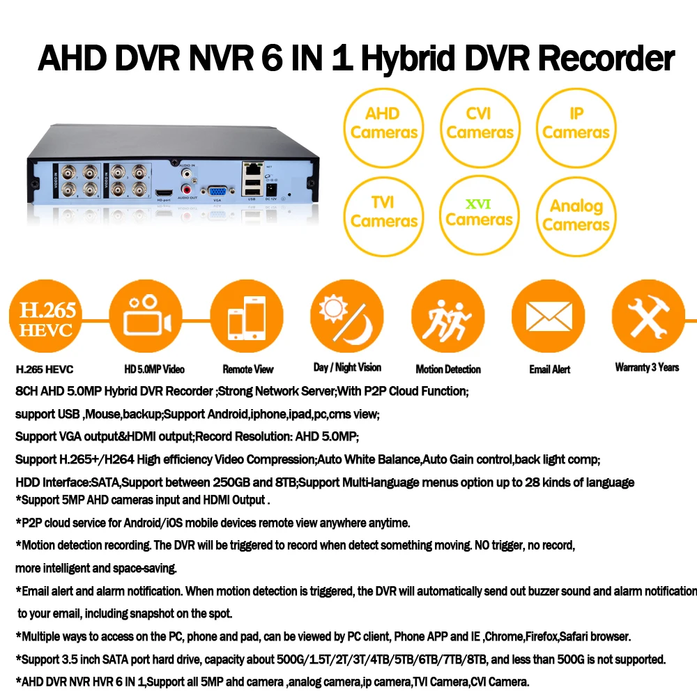 8CH DVR 5MP HD HDMI Outdoor Surveillance Security Camera System 8 Channel CCTV Veriface Pro DVR Recorder Kit AHD SONY Camera Set : Check Here